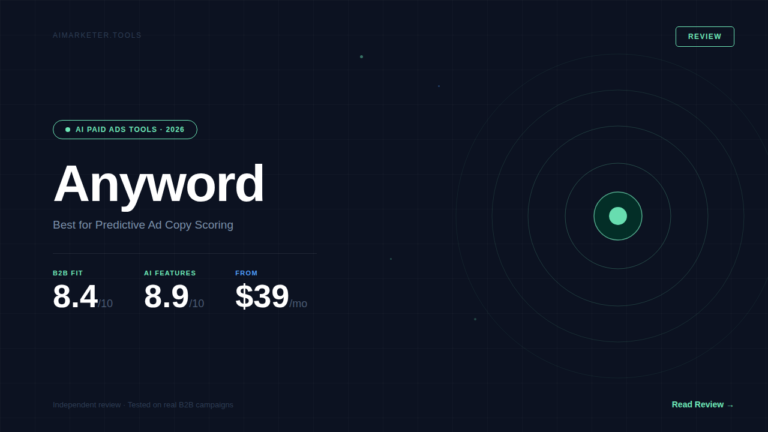 For B2B paid advertising, this is valuable because ad testing is expensive. Higher CPCs and smaller audiences mean each test costs more. Anyword compresses the testing cycle by eliminating weak copy variants before they ever enter the auction.